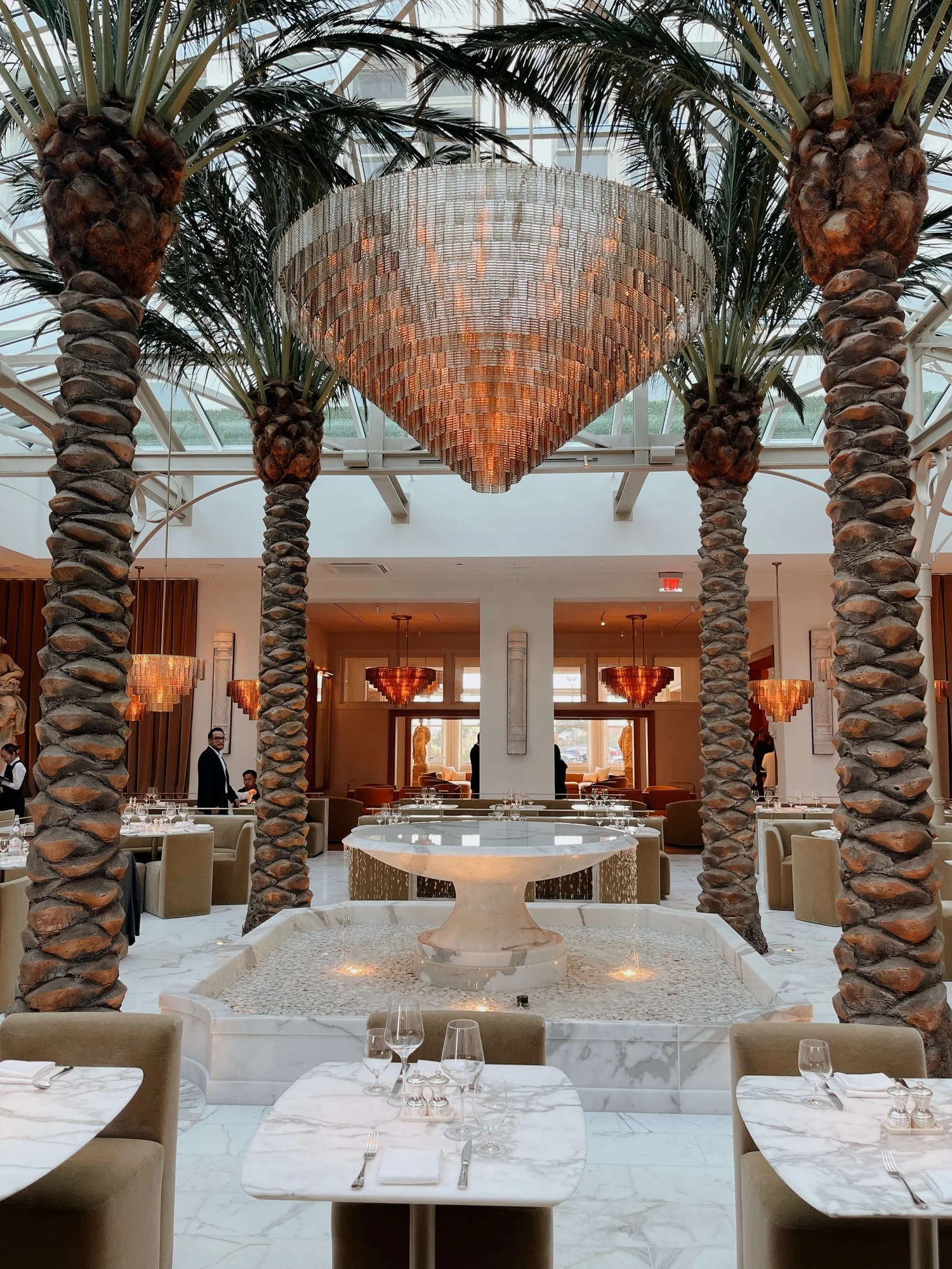 While all of the RH restaurants are known for their elegant light fixtures, the chandelier centerpiece of The Palm Court in San Francisco might be the most incredible of them all. Framed by 4 giant palm trees, and surrounded by a sea of white marble, this restaurant inside of RH San Francisco’s Gallery at the Historic Bethlehem Steel Building will take your breath away.