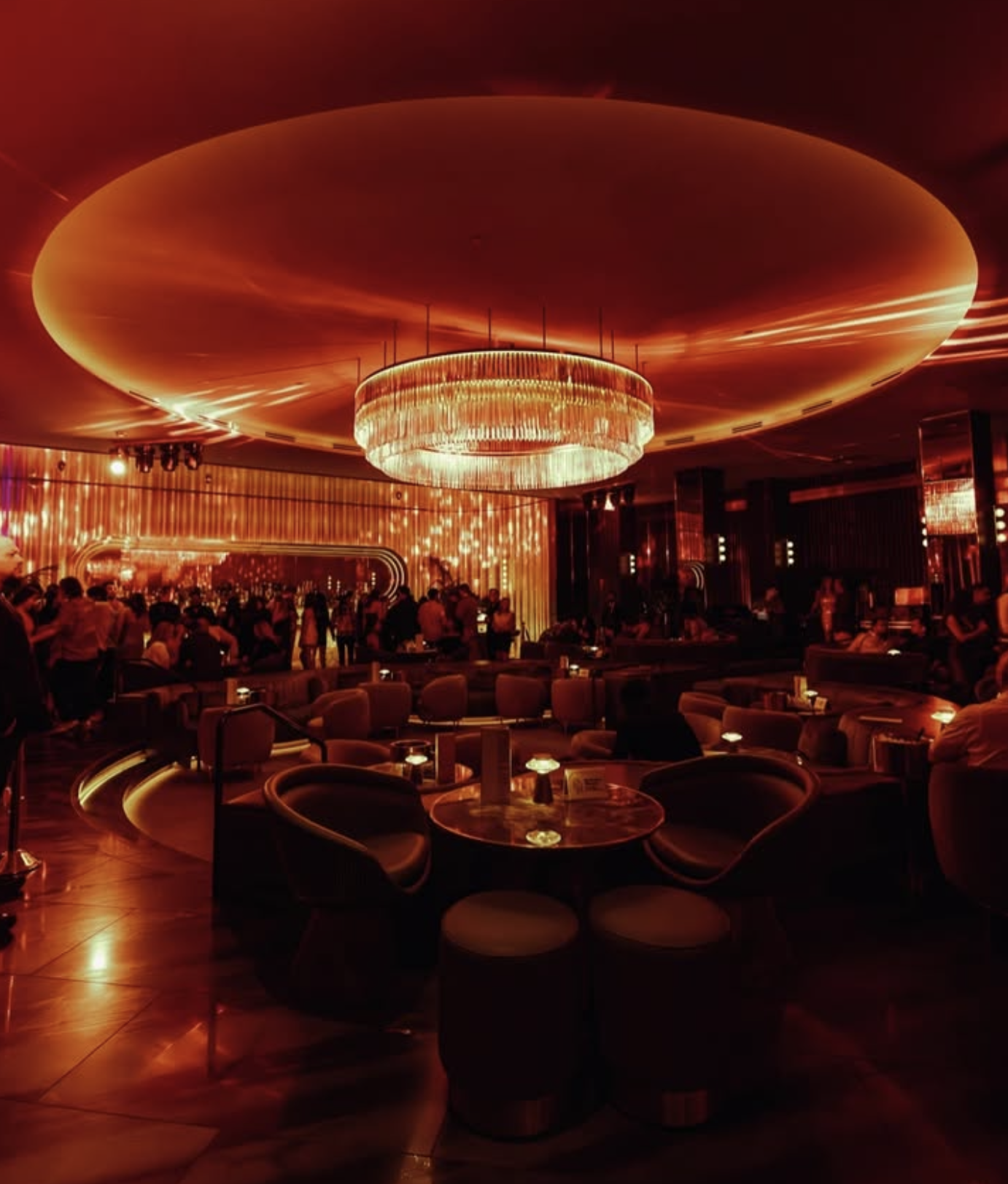 The Pinky Ring is a one of a kind cocktail lounge, curated by Bruno Mars and inspired by iconic Vegas glamour with the magnetic energy of a modern luxury lounge. In the center of the room you’ll find a dazzling circular chandelier that is the perfect statement piece to such a luxe and gorgeous space.