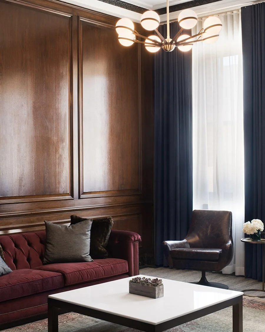 Set within the former Detroit Fire Department headquarters, the Detroit Foundation Hotel is a testament to architectural preservation done right. Exposed brick walls, soaring ceilings, and oversized windows bring an old-world charm, while modern furnishings and carefully placed lighting elevate the overall aesthetic. This is the kind of hotel that doesn’t just serve as a place to rest but actively contributes to the experience of the city. The lobby, with its high-design lounge area, is the ideal spot to sip a cocktail and soak in the city’s energy before heading out for the evening.