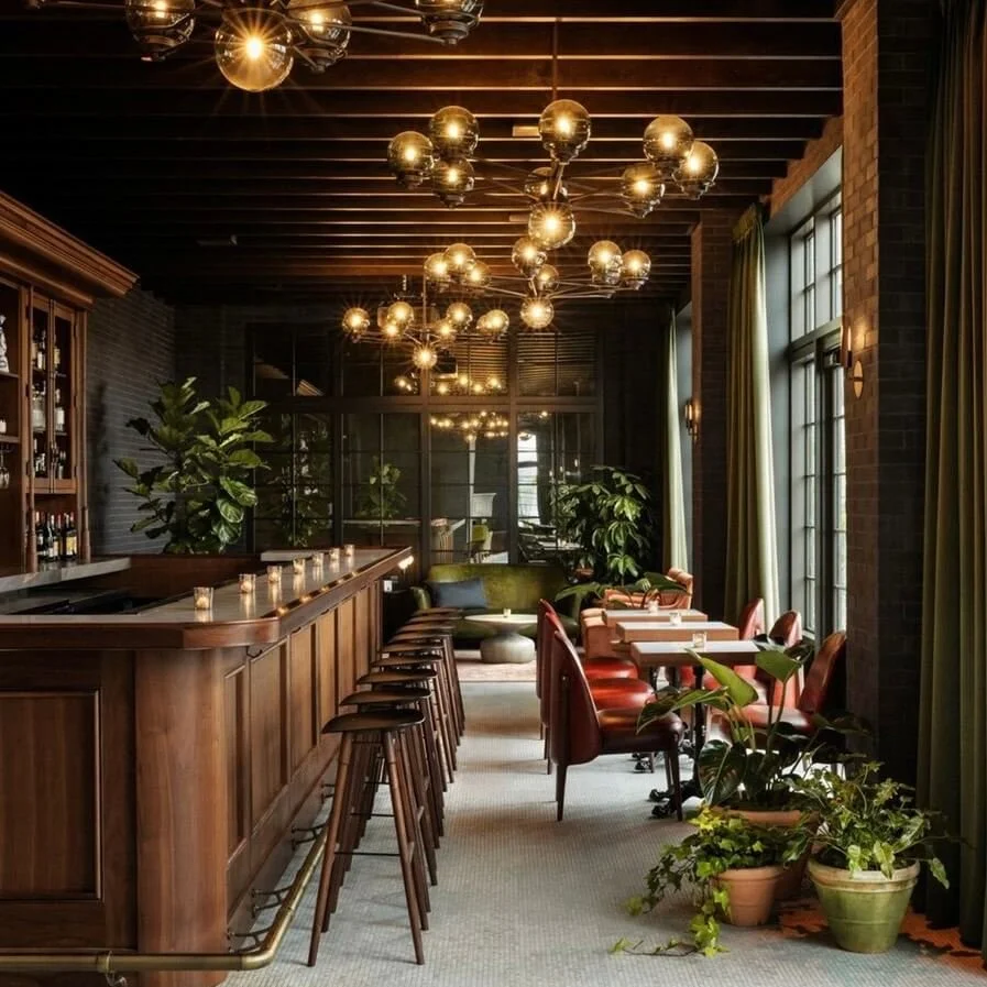 Hidden in the Shinola Hotel, a place where sophistication meets warmth, Evening Bar is a study in rich textures and low-lit intimacy. Plush seating, gleaming brass accents, and a fireplace that casts the perfect golden glow make it the ultimate destination for an evening drink that feels as indulgent as the space itself.