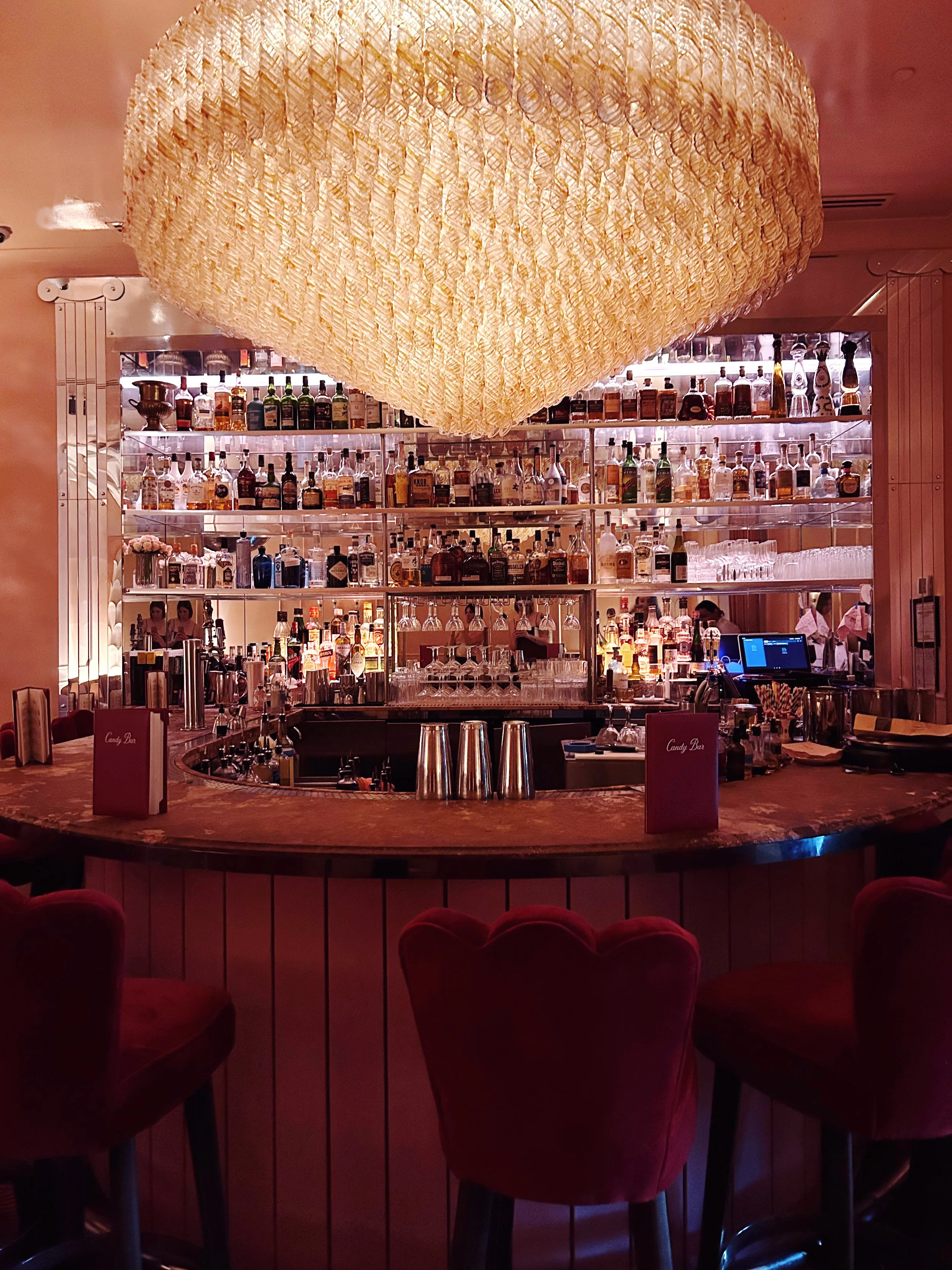 The space that played a role in Opulist’s very beginning, Candy Bar is pure magic. The pink velvet booths, softly glowing chandeliers, and retro-futuristic details create a dreamlike setting that feels both nostalgic and otherworldly. The lighting is impossibly flattering, the atmosphere is intimate yet electric, and the entire space feels like an invitation to step outside of reality for a while.