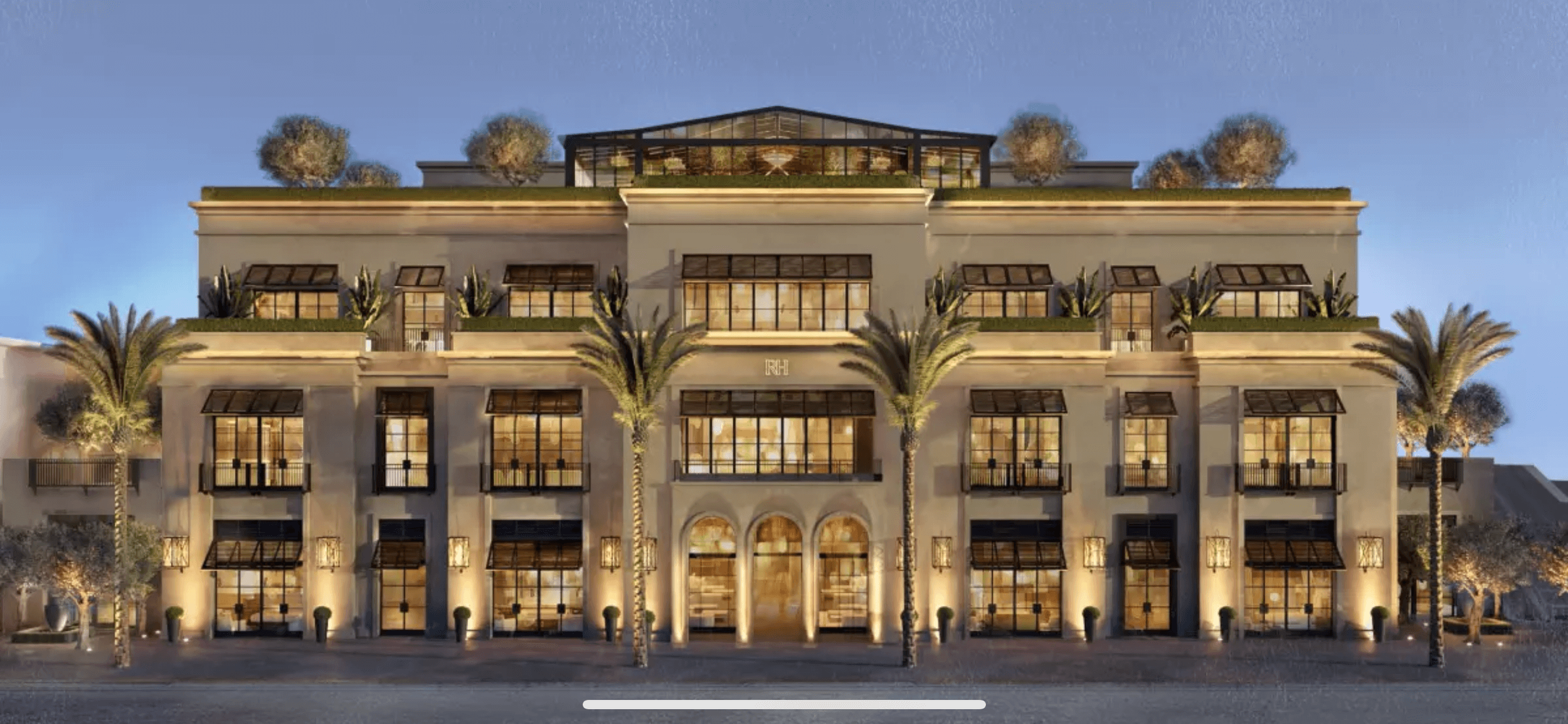 In spring 2024, RH (formerly known as Restoration Hardware) will open its new 80,000-square-foot furniture gallery in Newport Beach. The luxury furniture brand's announcement with the Irvine Co. revealed plans for a four-story building on the ocean-facing side of the outdoor shopping mall. RH chairman and CEO, Gary Friedman, expressed pride in bringing this innovative design gallery to Fashion Island, emphasizing the vision to create immersive spaces blending residential and retail, indoors and outdoors, and home and hospitality.