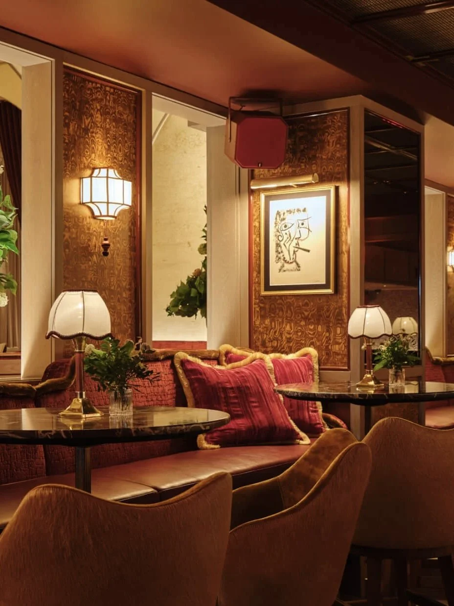 The restaurant boasts minimalist design elements, featuring grand arches, high ceilings, textured walls, and plush velvet booths in rich red hues, all set under dim lighting that creates an intimate ambiance. For those seeking a more secluded experience, Crane Club offers private dining options, ensuring an exclusive and memorable visit.